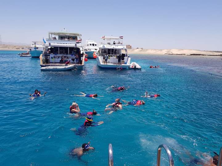 - Ok. godz. 10:00 rejs morski, podczas którego sa 2 nurkowania powierzchniowe (snorkowanie) ze statku w okolicach wysepek położonych w Parku Narodowym Wadi El Hamata ( ok. 1h każde),