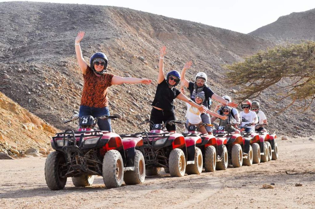 1️⃣ rozpoczynamy wyjazdem z hotelu po śniadaniu na pustynię , gdzie czekają na państwa QUADY, którymi rozpoczynamy około 2 h przejażdżkę przez pustynię wzdłuż wiosek beduińskich .